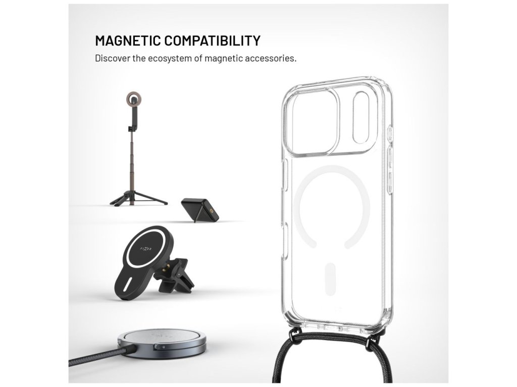 Pouzdro FIXED MagPure Neck s černou šňůrkou na krk pro Apple iPhone 17 Pro