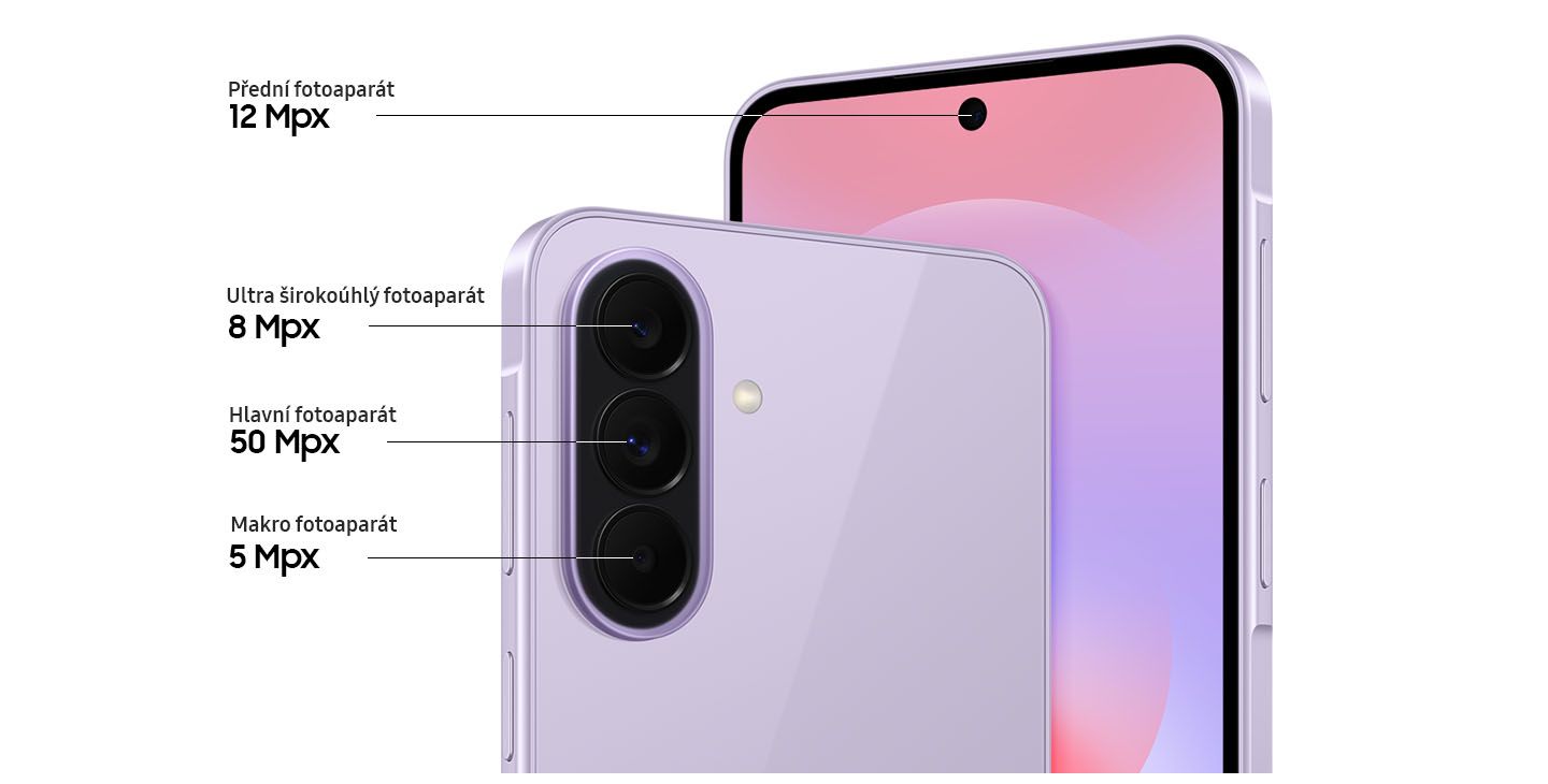 Pořizuj dokonalé záběry s telefonem Galaxy A37 5G. Ten je vybavený 50Mpx širokoúhlým fotoaparátem, 8Mpx ultraširokoúhlým fotoaparátem a 5Mpx makro objektivem. Přední fotoaparát podporuje nahrávání videí v režimu Super HDR, takže tvé vzpomínky zůstanou živé a věrné realitě.