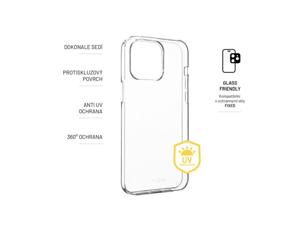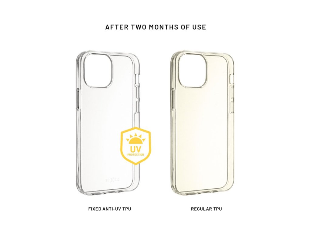 Je vyrobeno ze speciálního TPU materiálu s AntiUV úpravou, která chrání před žloutnutím krytu vlivem slunečního záření. Oproti běžným gelovým krytům tak i po čase zůstává stále jako nové. Pouzdro chrání boky a záda přístroje před poškrabáním, prachem a případnými pády. Plně transparentní provedení nechá vyniknout originálnímu designu vašeho mobilního telefonu. Každé z pouzder FIXED je vyrobeno přesně na míru daného zařízení, nezakrývá nabíjecí ani sluchátkové konektory. Okraje pouzdra lehce přesahují displej a chrání ho tak před poškrábáním, pro maximální ochranu telefonu je však vhodné doplnit pouzdro sklem na displej.